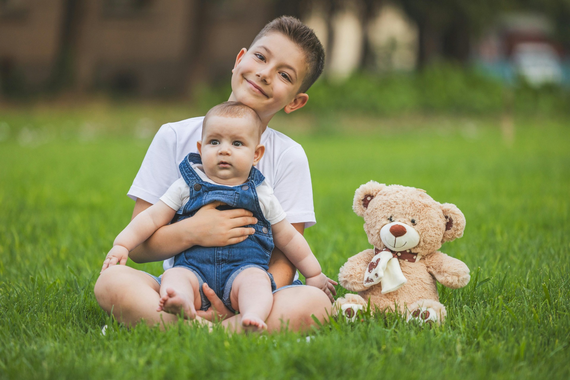 Μαθαίνοντας τη φροντίδα: Ένα παιδί αγκαλιάζει το μωρό, αναπτύσσοντας την ενσυναίσθηση μέσα από την καθημερινή στοργή.